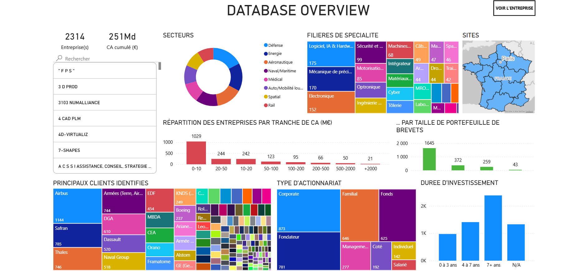 Conception et automatisation d'une base de données stratégique recensant 2300 acteurs français de la défense et de l'aéronautique avec enrichissement des données via API, agents IA et synchronisation multi-sources.